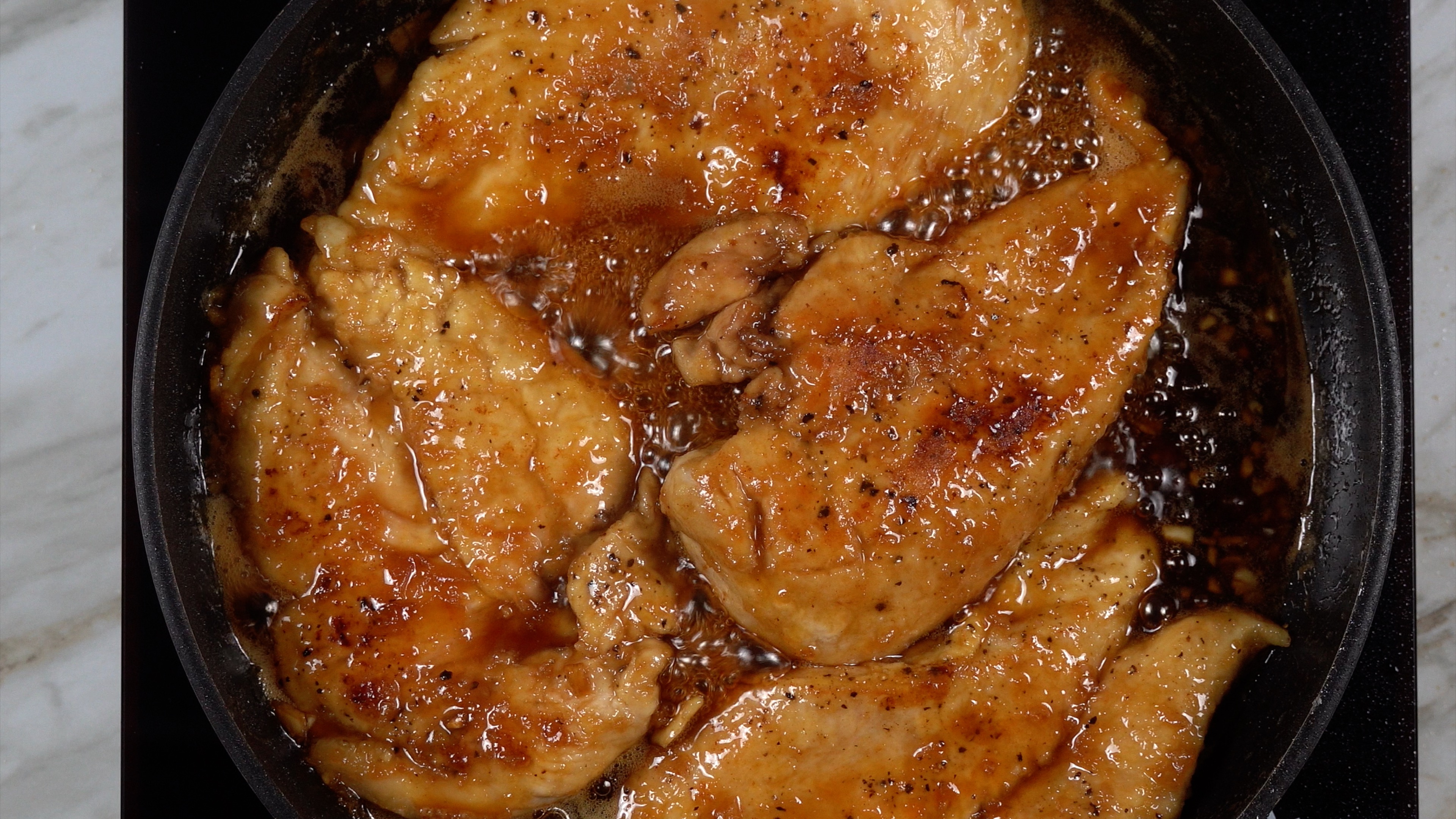 Flip the chicken every minute or so to get a good coat of sauce.